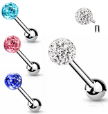 Stylisches Zungenpiercing mit Glitzerkugel, gefertigt aus robustem Chirurgenstahl mit praktischem Innengewinde für angenehmes Tragen. Die Stablänge beträgt 16 mm und sorgt für perfekten Sitz. Erhältlich in vier glitzernden Farben: Kristall, Pink, Blau und Türkis – für deinen individuellen Look mit Wow-Effekt!